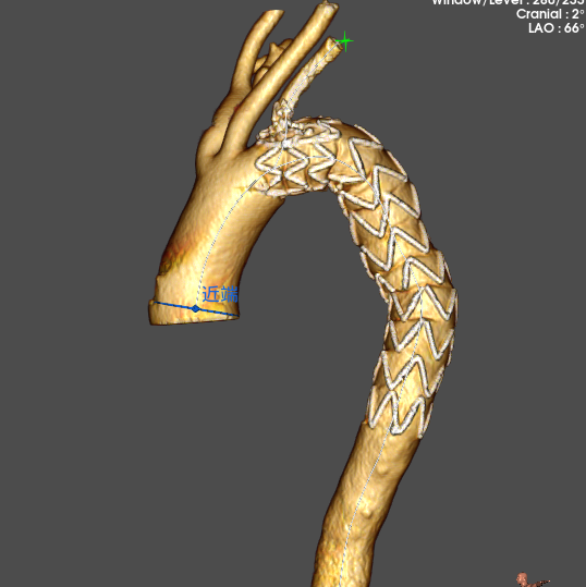 Cratos®/通天镰™分支型主动脉覆膜支架系统用于治疗胸主动脉夹层,且其近端破口在左颈总动脉远端15mm与左锁骨下动脉(LSA)远端20mm之间或夹层逆撕至LSA。 覆膜支架锚定区长度应≥15mm。